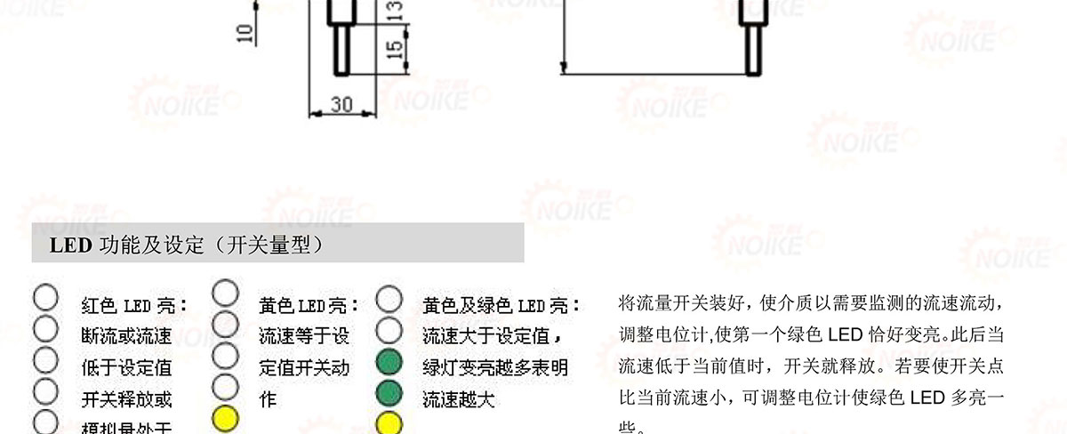 NK-600XE系列熱導(dǎo)式流量開關(guān)可對管道中的液體流動情況進(jìn)行實時監(jiān)控,無活動部件,免維護(hù),安裝方便,一種型號是用于多種管徑要求,提供開關(guān)量輸出,并采用6個LED實時顯示流體流速狀態(tài),實現(xiàn)下列監(jiān)控功能;介質(zhì)流動,降低/提高流速;介質(zhì)存在/不存在;介質(zhì)流動/靜止:監(jiān)控管道內(nèi)流體流速大小、斷流監(jiān)測或防止泵的空轉(zhuǎn)。被廣泛應(yīng)用于石油化工、電力、治金、鋼廠、造紙、食口品加工、水處理、電池廠等行業(yè)。氣液兩用型,可用于氣動和液壓系統(tǒng),可用于循環(huán)水,切割液及潤滑油的斷流監(jiān)測,以及泵的空轉(zhuǎn)保護(hù)。