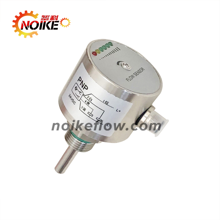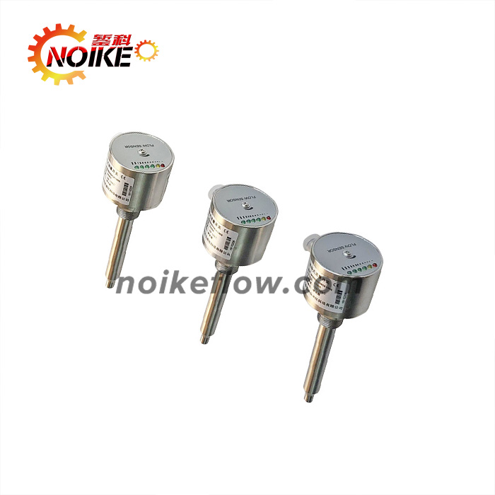 NK600系列熱導式流量開關是基于熱交換原理設計的。探頭內置發(fā)熱模塊及感熱模塊,流量開關的熱傳導同介質的流速密切相關,測量時,由發(fā)熱模塊發(fā)出熱量,如果管道內沒有介質流動,則感熱模塊接收到的熱量是一個固定值當有介質流動時,感熱模塊所接收到的熱量將隨介質的流速變化而變化,感熱模塊將這溫差信號轉化成電信號,再通過處理器將其轉換為對應的標準模擬量信號或接點信號輸出,流量開關通過這個信號對介質的流速進行顯示及控制。