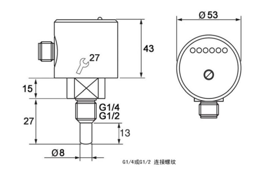 Install the flow switch so that the medium flows at the flow rate that needs to be monitored, and adjust the potentiometer so that the first green LED just turns on. After that, when the flow rate is lower than the current value, the switch is released. To make the switch point smaller than the current flow rate, adjust the potentiometer to make the green LED brighter.
