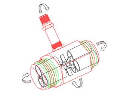 渦輪流量計(jì)由幾乎無(wú)摩擦的轉(zhuǎn)子組成,該轉(zhuǎn)子沿流量計(jì)管的軸線樞轉(zhuǎn),并設(shè)計(jì)成使得轉(zhuǎn)子的旋轉(zhuǎn)速率與通過(guò)流量計(jì)的流體流量成比例。借助于安裝在儀表殼體外部的分接線圈來(lái)感測(cè)該轉(zhuǎn)速。