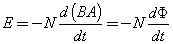 其中E是感應(yīng)電流的電壓,B是外部磁場(chǎng),A是線圈的截面積,N是線圈的匝數(shù),是磁通量,最后的負(fù)號(hào)表示電流根據(jù)倫茲定律,感應(yīng)產(chǎn)生的磁場(chǎng)會(huì)產(chǎn)生另一個(gè)磁場(chǎng),該磁場(chǎng)與線圈中磁場(chǎng)的積累相反。