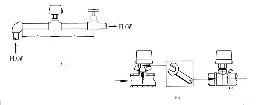 3.流量開關(guān)一定要安裝一段支線管道上,其兩邊至少5倍管徑的直線行程,同時(shí)應(yīng)注意管道中液流方向必須與開關(guān)外殼上的箭頭方向一致,其接線端子應(yīng)在易于接線的位置;(圖1)