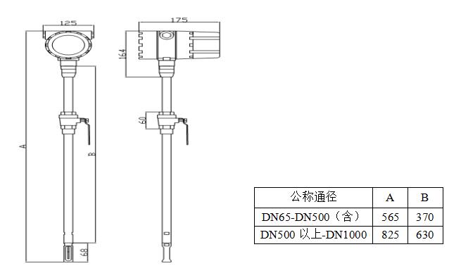 A)一體型插入式應(yīng)插入至被測管路軸心,所以測量桿長度視測管徑大小而定。訂貨時(shí)應(yīng)說明。若不能插入至管道軸心,將有廠方提供標(biāo)定系數(shù),以完成準(zhǔn)確測量。