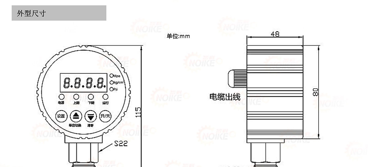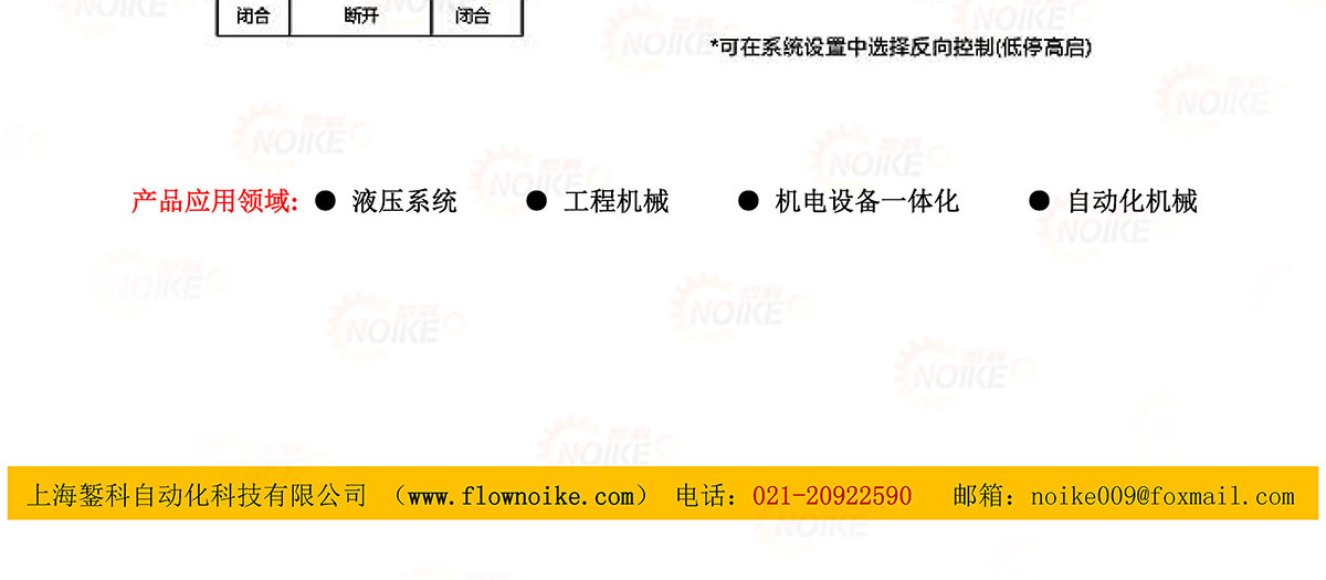 (2)該控制器具有延時控制,反向控制,三種壓力單位切換,誤差一鍵清零等多種附加功能,廣泛用于液壓氣動系統(tǒng),機電設備一體化,工程機械,自動化機械配套