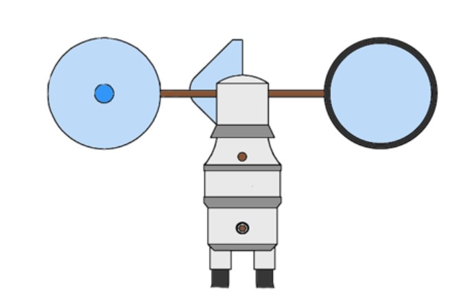 這種空氣流量計(jì)具有垂直軸的布置,該垂直軸支撐攜帶四個(gè)半球形杯的水平臂。在任何時(shí)刻,至少有一個(gè)杯子面向空氣流動(dòng)的方向。