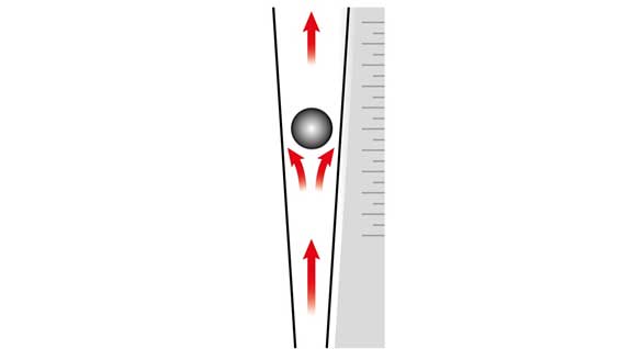 圖2.垂直安裝在透明錐形管中的球。典型目標應用:非透明流體的低成本本地指示。